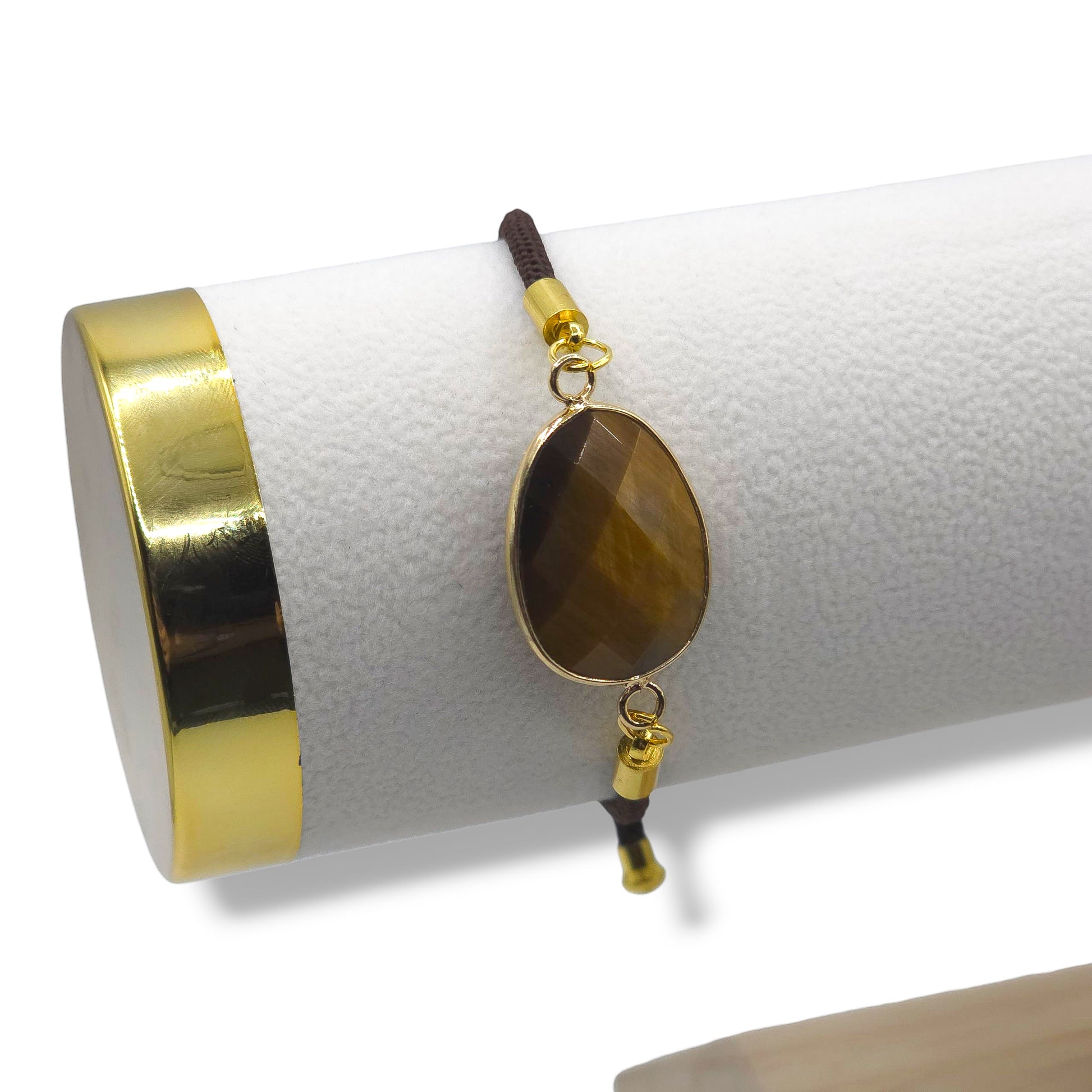 L'œil de Tigre appartient à la famille des Quartzites. Elle représente une dureté de 7/10 sur l'échelle de Mohs. Ses principaux gisements se trouvent en Afrique du Sud, d'Australie, de Chine, etc. En apparence on la retrouve sous la nuance de Brun, Jaune doré.