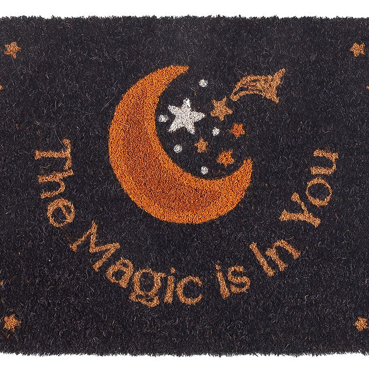 Accueillez vos proches avec une touche de magie et d’enchantement grâce à ce magnifique paillasson violet au design empreint de spiritualité. Orné d’un motif mystique combinant lune et étoiles, il porte fièrement l’inscription inspirante « The Magic is In You », un rappel puissant que la magie réside en chacun de nous.