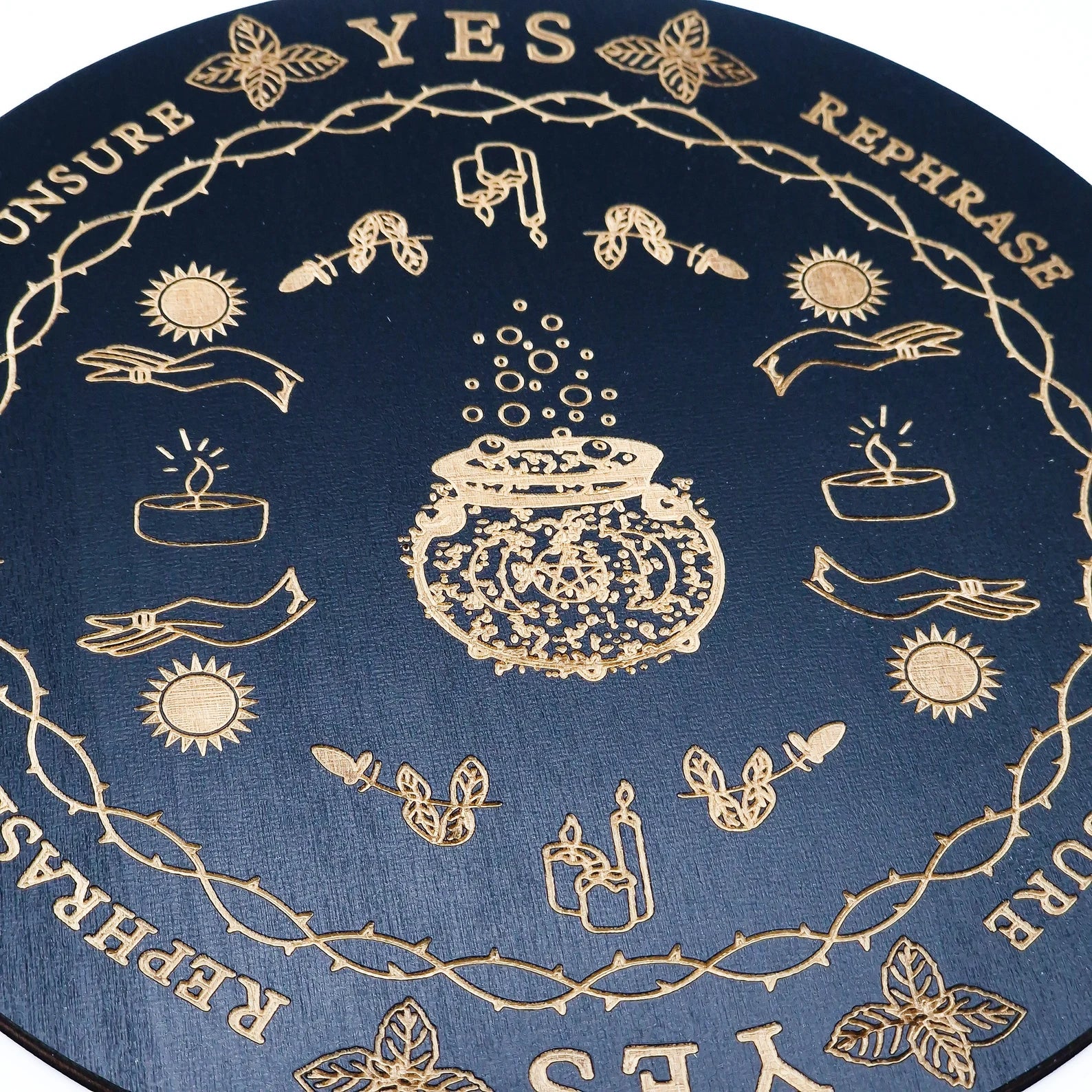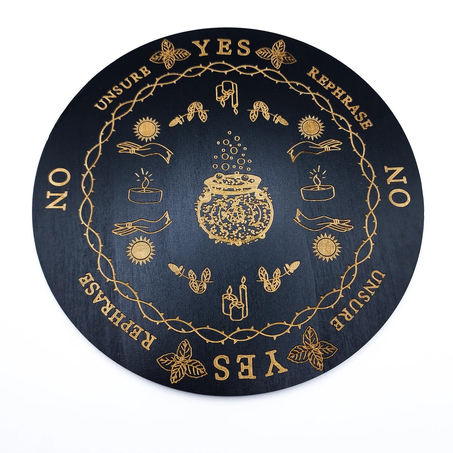 Cette planche de radiesthésie en bois gravé, également appelée cadran de radiesthésie ou biomètre, est un outil idéal pour l'utilisation du pendule divinatoire.