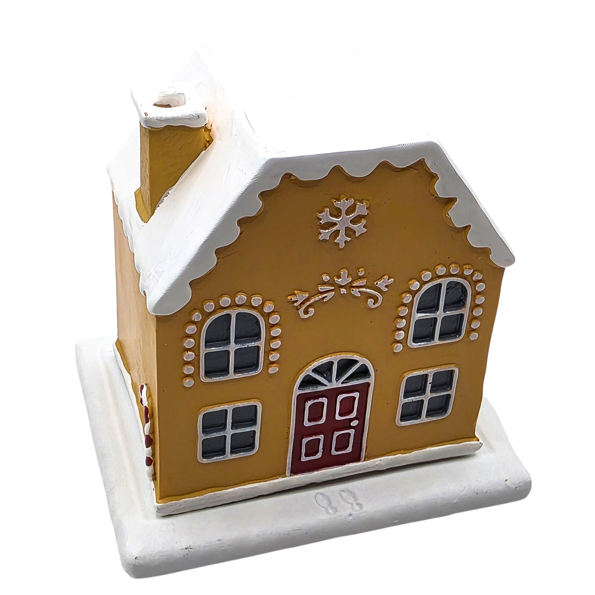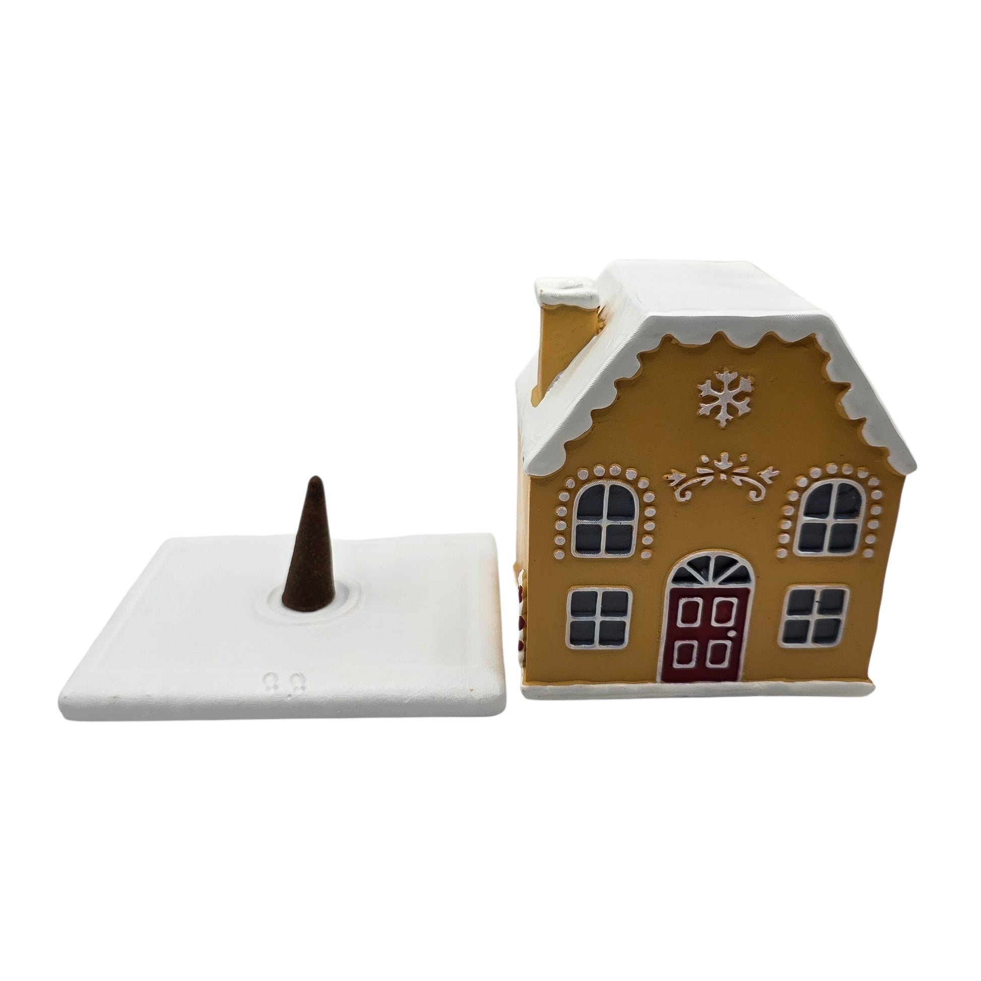 Plongez dans la magie des fêtes avec ce porte-encens en céramique en forme de maison en pain d’épices, parfait pour recréer chez vous l’ambiance chaleureuse des hivers enchantés.