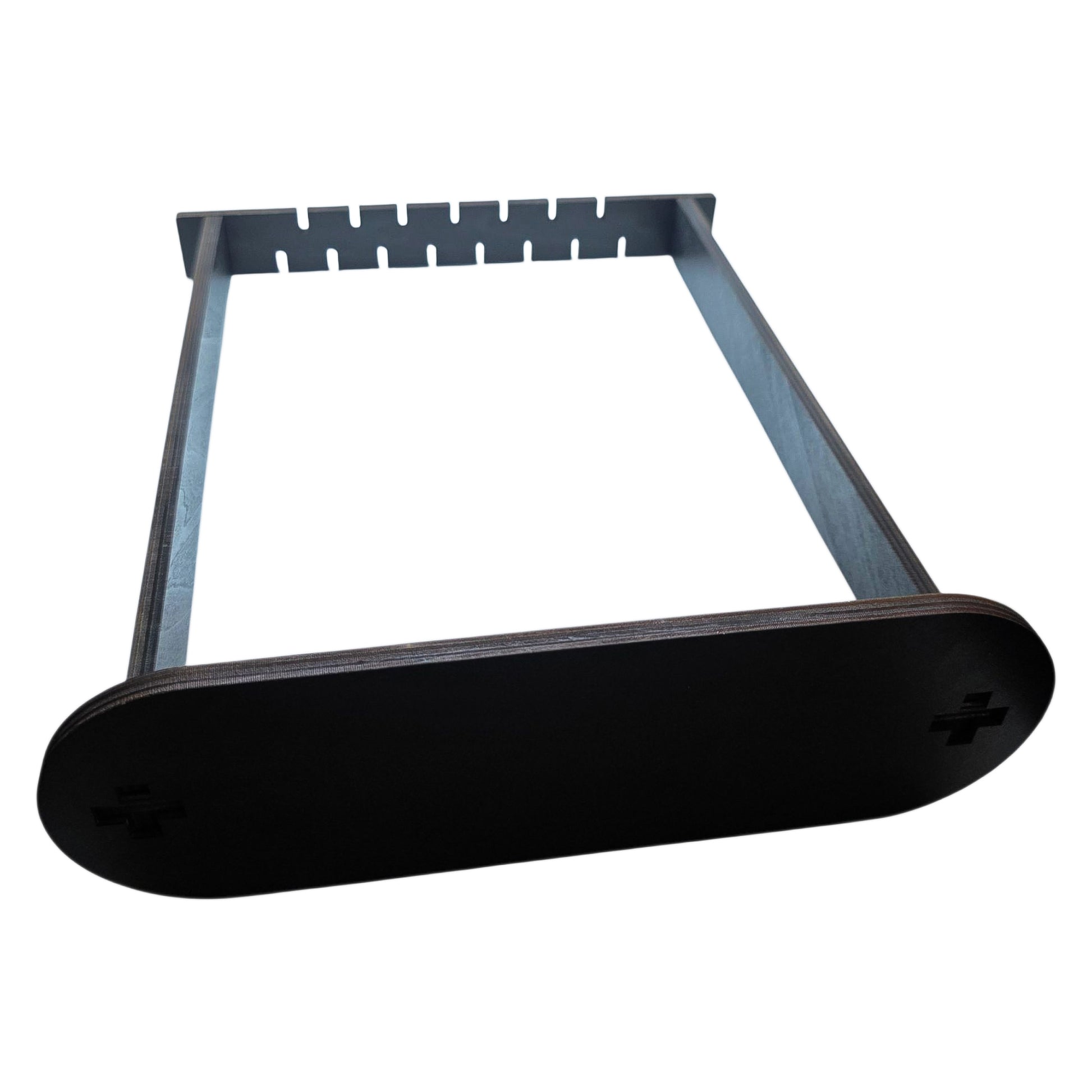 Livré en pièces détachées, le support s’assemble facilement mais parfois il peut être légèrement dur à enfoncer, sans colle ni outils. Il est cependant conseillé de le manipuler avec précaution lors du montage pour éviter d’éventuelles fissures. La finition noire, profonde et intense, peut légèrement déteindre au contact de l’humidité. Il est donc recommandé de le manipuler avec des mains sèches.